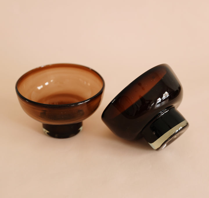 Copa de vidrio soplado en color chocolate para postres.