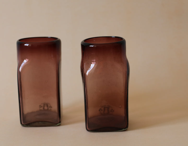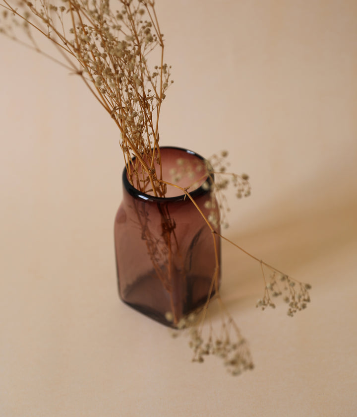 Florero de vidrio soplado, estilo carafe, color amatista.