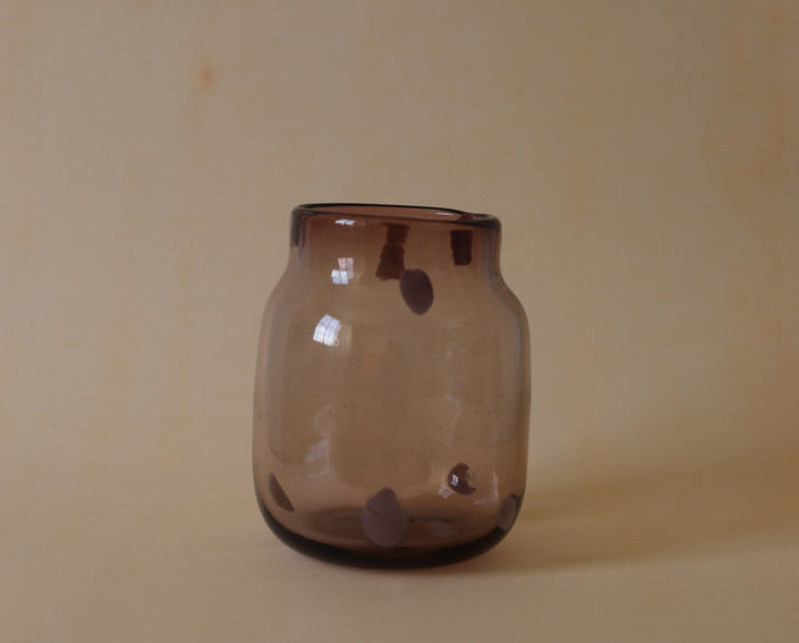 Florero de vidrio soplado, modelo JAR con lunares, color Amatista.