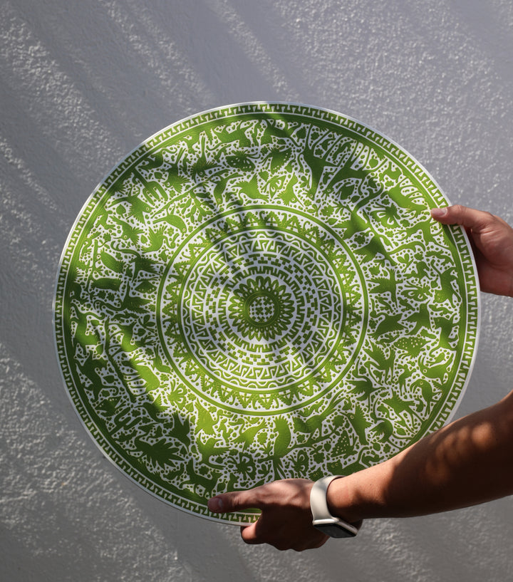 Plato giratorio "Lazy Susan" de 50cm de diámetro, en color verde con fondo blanco.