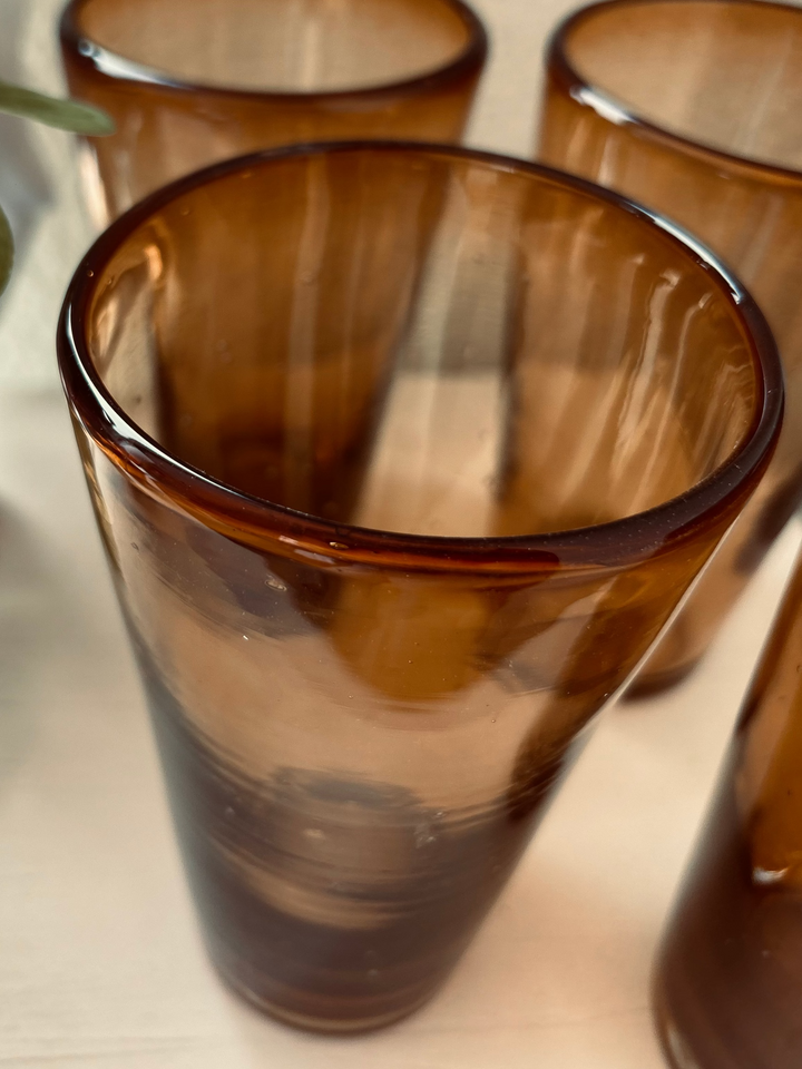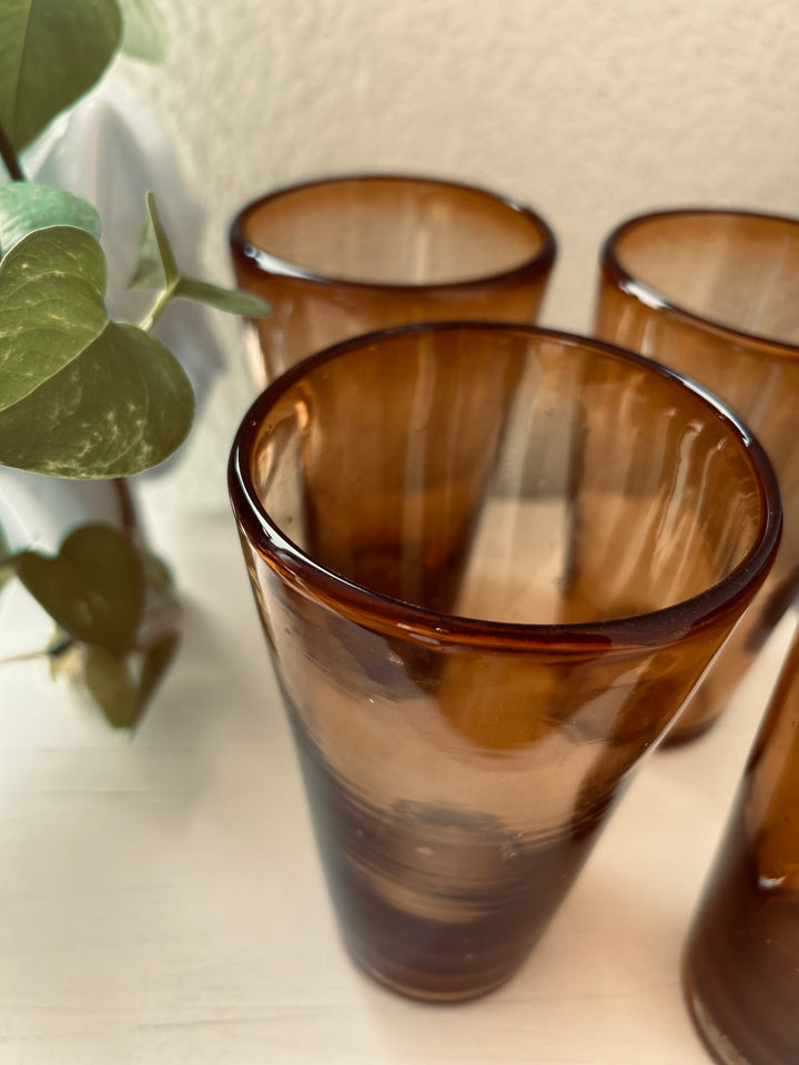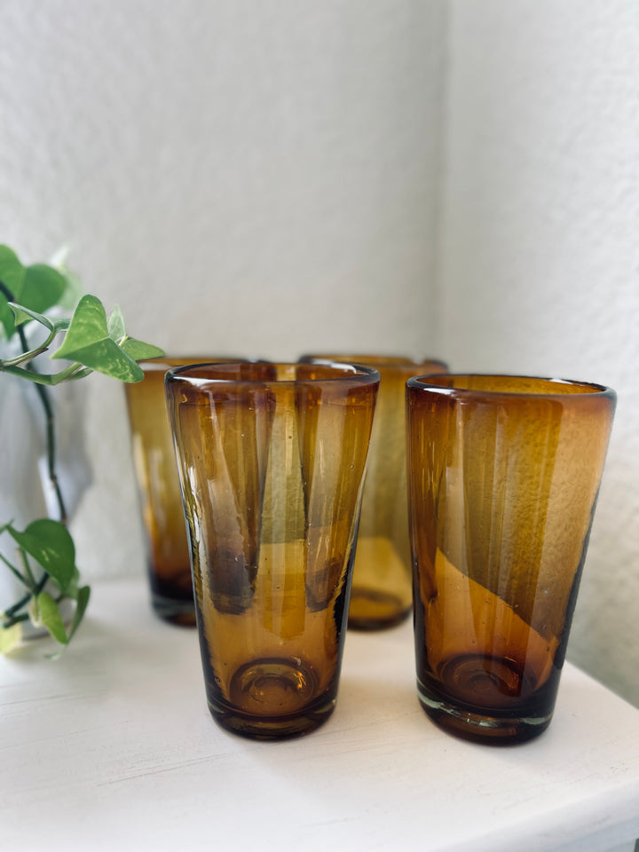 Vaso de vidrio soplado grande, estilo Highball color cobalto.