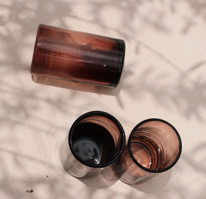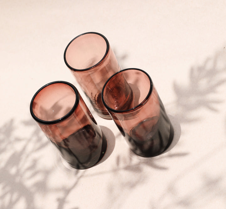 Vaso estilo HighBall de vidrio soplado, color amatista. Forma redonda y amplia.