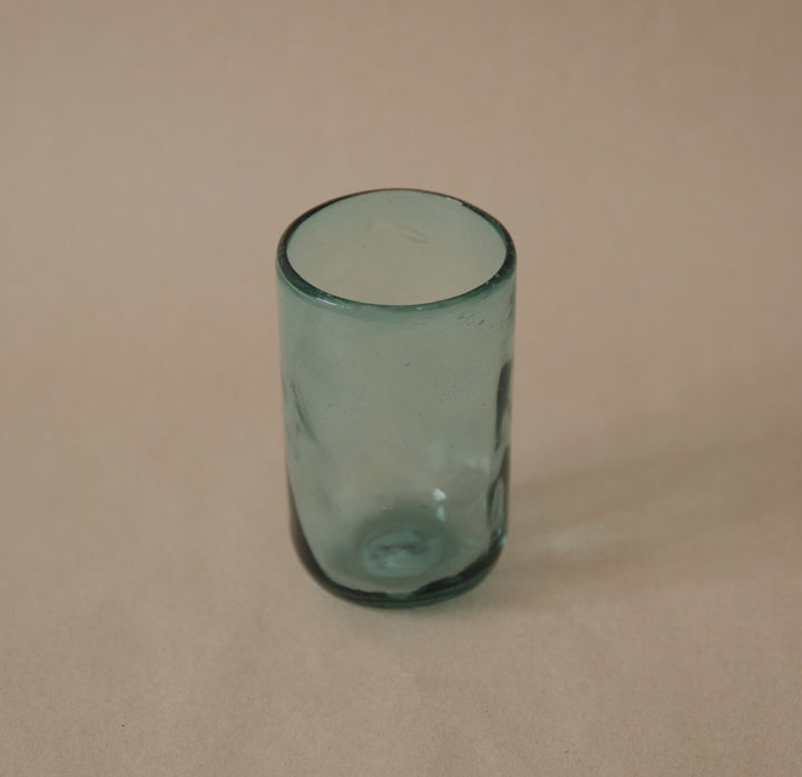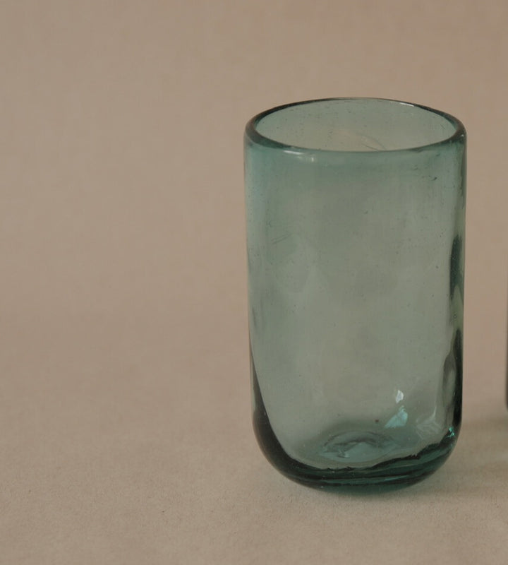 Vasos de vidrio soplado estilo HighBall en forma cilíndrica, color verde olivo. Ideal para aguas frescas, mocktails y sobre todo, darle un estilo súper original a tu mesa.