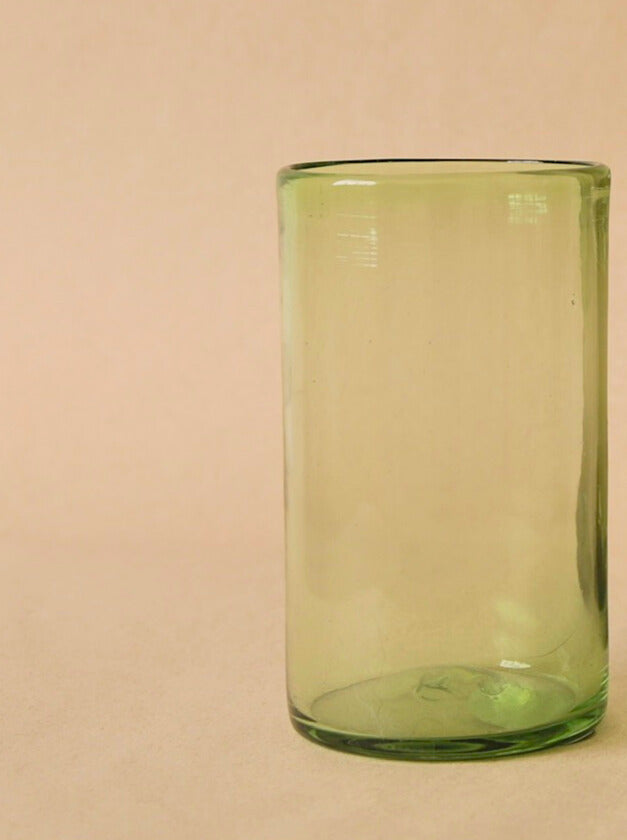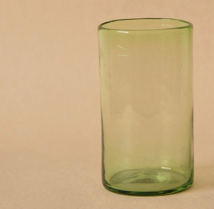 Vaso tipo HighBall de vidrio soplado color verde Jade. Ideal para darle un toque diferente a tu mesa.