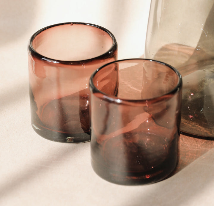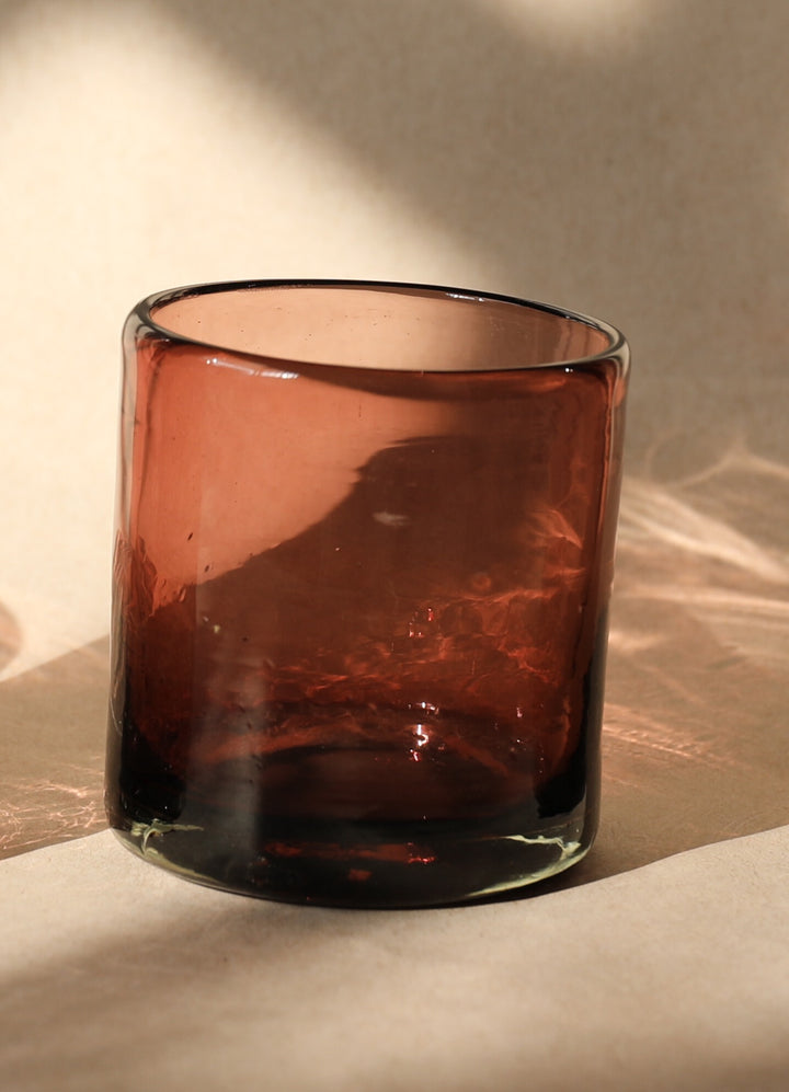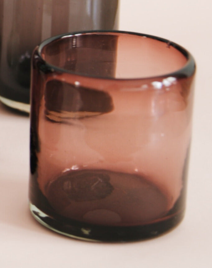 Vaso de vidrio soplado estilo Old Fashion en color Amatista. Un diseño sencillo pero elegante, ideal para tu mesa diaria.