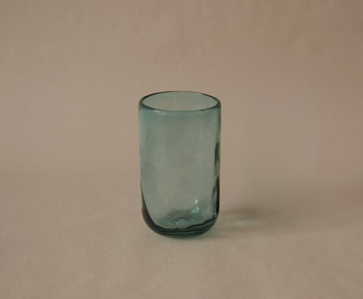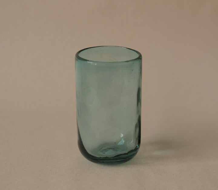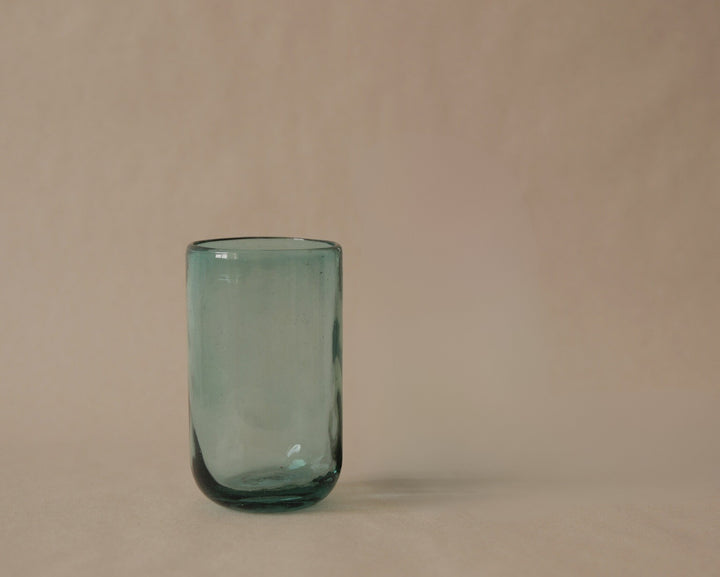 Vaso de vidrio soplado estilo Highball de forma cónica en color azul.